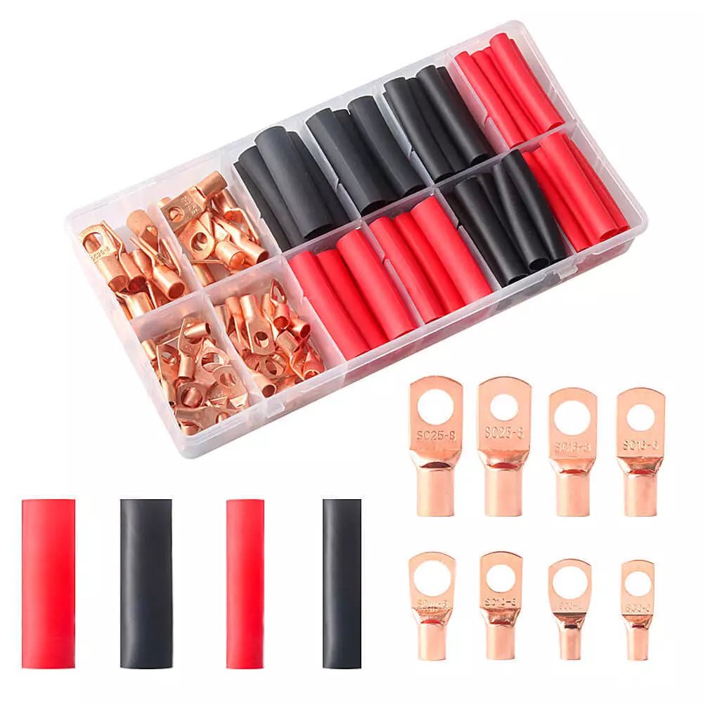 120Pcs Copper Wire Lugs with Heat Shrink Set, Battery Cable Lugs Battery Cable Ends Ring Terminals Connectors - HomeDIYer