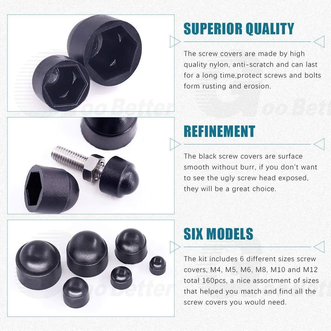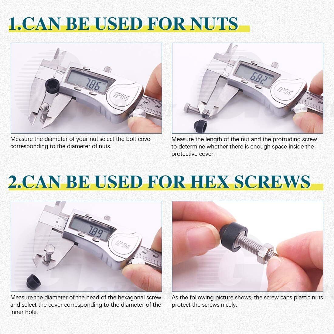 145pcs M4 - M12 Dome Hex Bolt Nut Head Caps Cover Against Protection Plastic Black - HomeDIYer