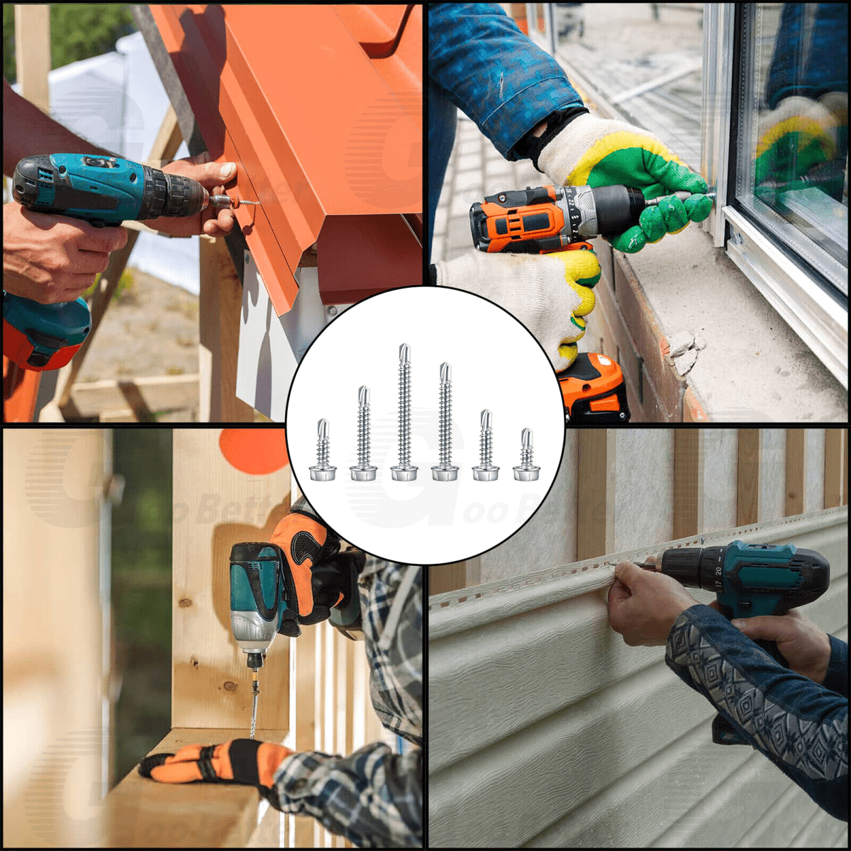 These are a decent little set of sheet metal screws to have if like me, you do a fair amount of duct work... They look nice when installed, but my main complaints about them are that they use two different driver sizes rather than just sticking with 1/4" and they don't self drill very well... I gave up trying and just drilled pilot holes, then they work fine but if you're trying to work fast it's nice to have self drilling sheet metal screws.