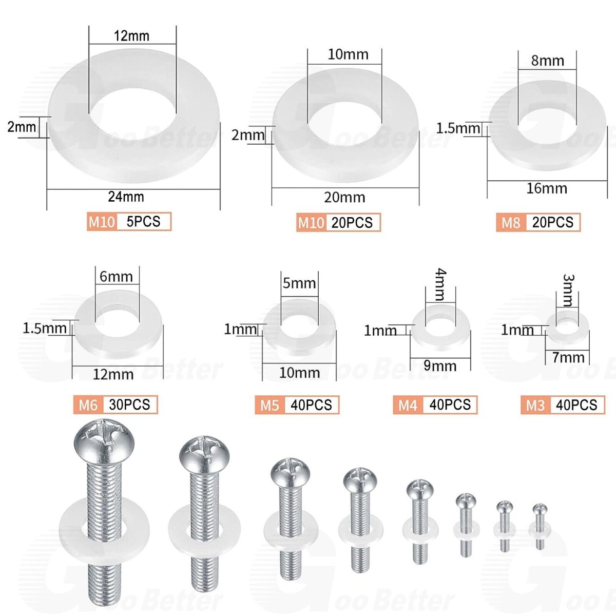 195pcs M3 - M12 White Nylon Flat Washers Set Assorted Seals Washer O - Ring Gasket - HomeDIYer