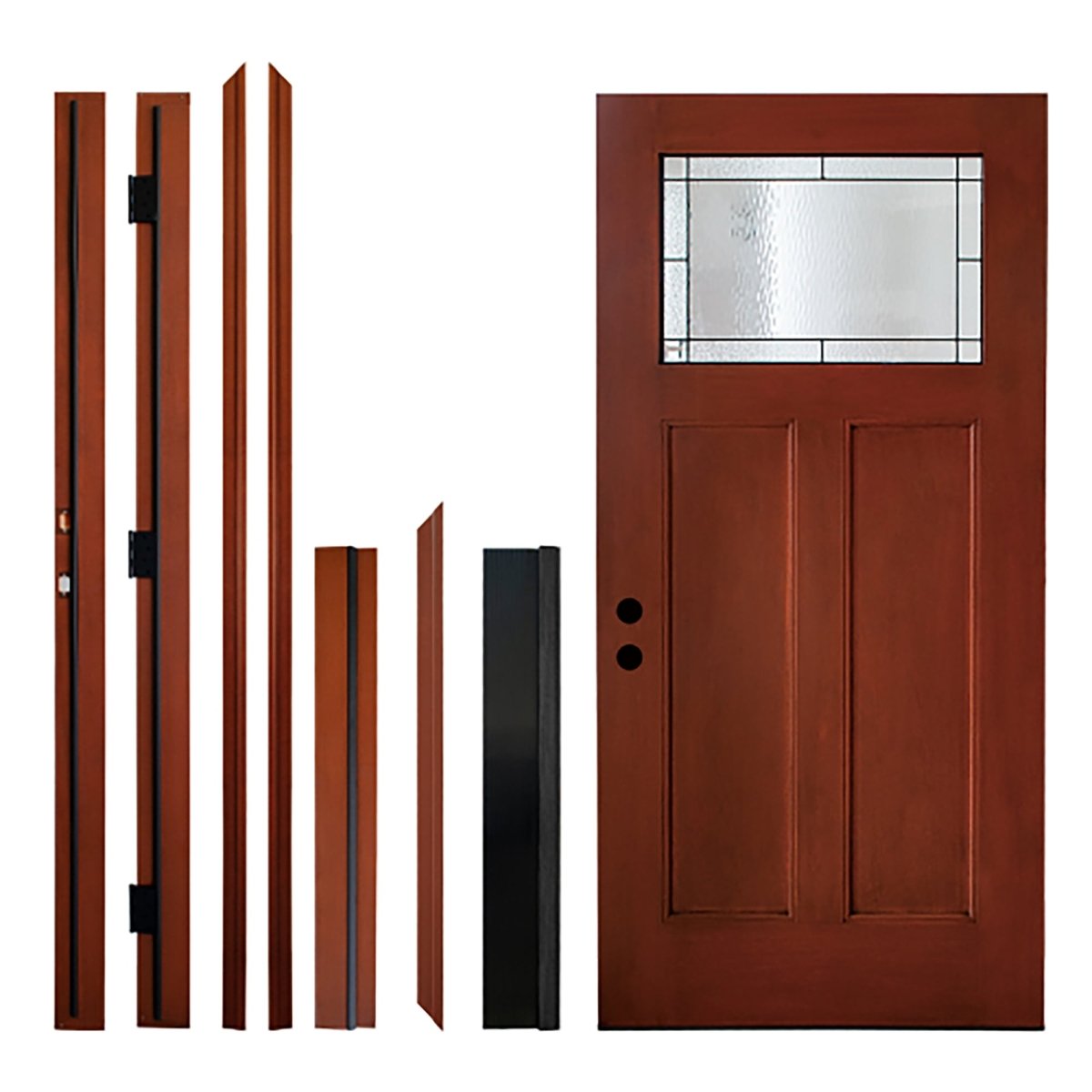 36 x 80 Knock-Down Fiberglass Entry Door with Brickmould, Vinyl Frame,Right Hand Inswing, Stain Red - Classic Craftsman Style for Home's Front Entrance - Default Title