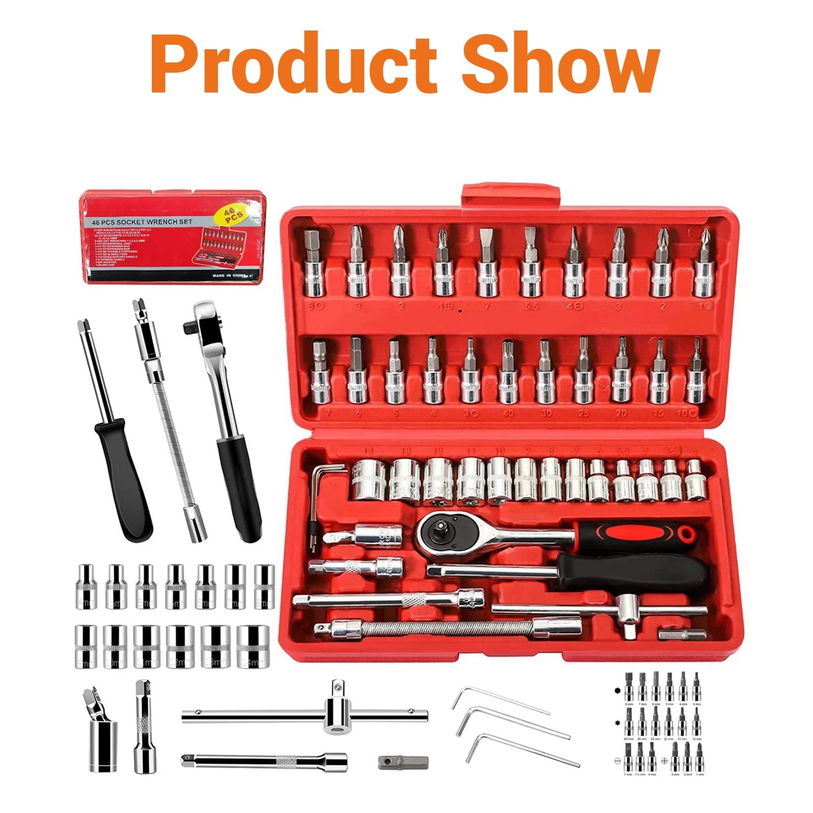 46PCS 1/4 Buchse Ratsche Set Auswirkungen Buchse Bit Kit Automotive Reparatur Werkzeug - Default Title