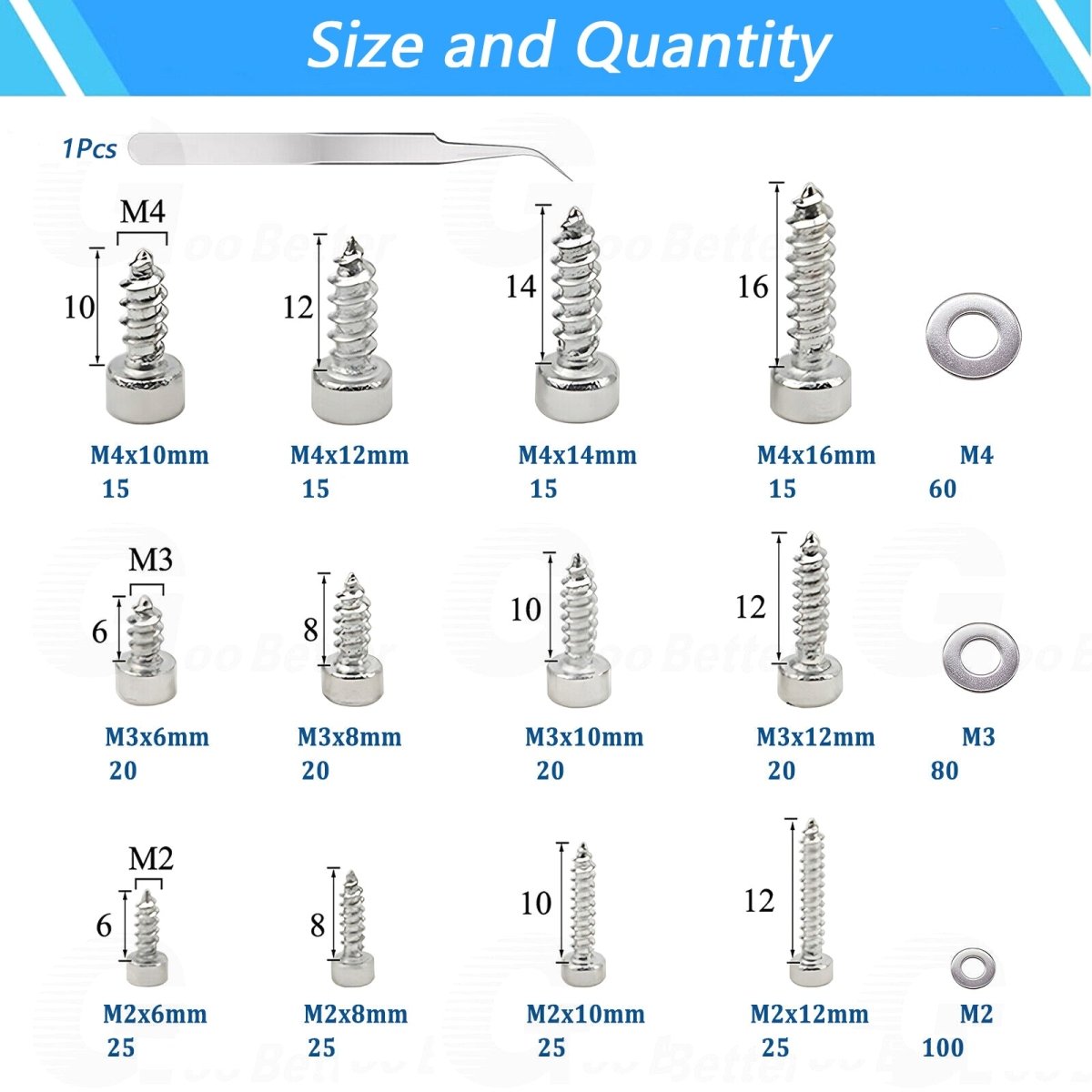 481Pcs M2 M3 M4 Sockct Cap Head Sclf Tapping Screw with Flat Gasket Set - HomeDIYer