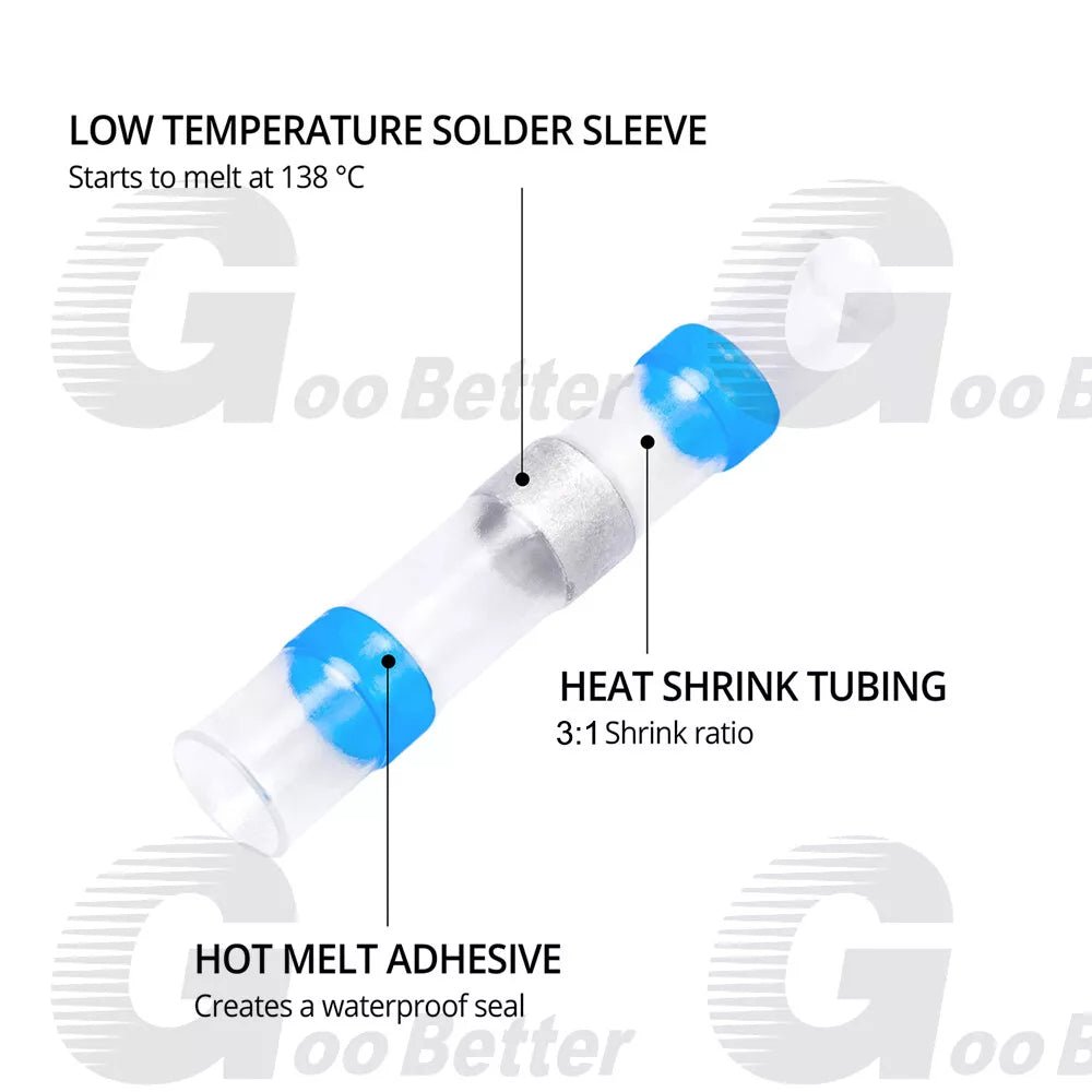 50x Blue Waterproof Heat Shrink Butt Terminals Solder Seal Wire Connector Bagged - HomeDIYer