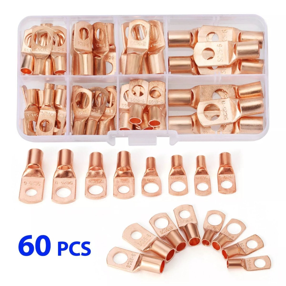 60Pcs/Kit SC6 - 25 Copper Lug Ring Battery Bare Lug Terminals Connector Wire Gauge - HomeDIYer