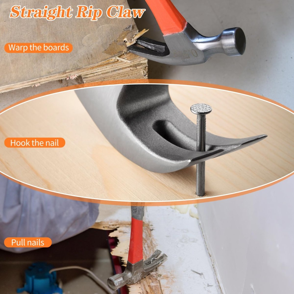 8/16/24oz Straight Rip Fiberglass General Purpose Claw Hammer, with Smooth Face & Non - slip Grip - HomeDIYer
