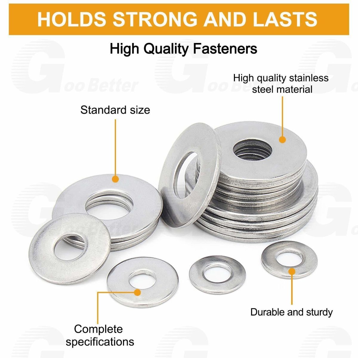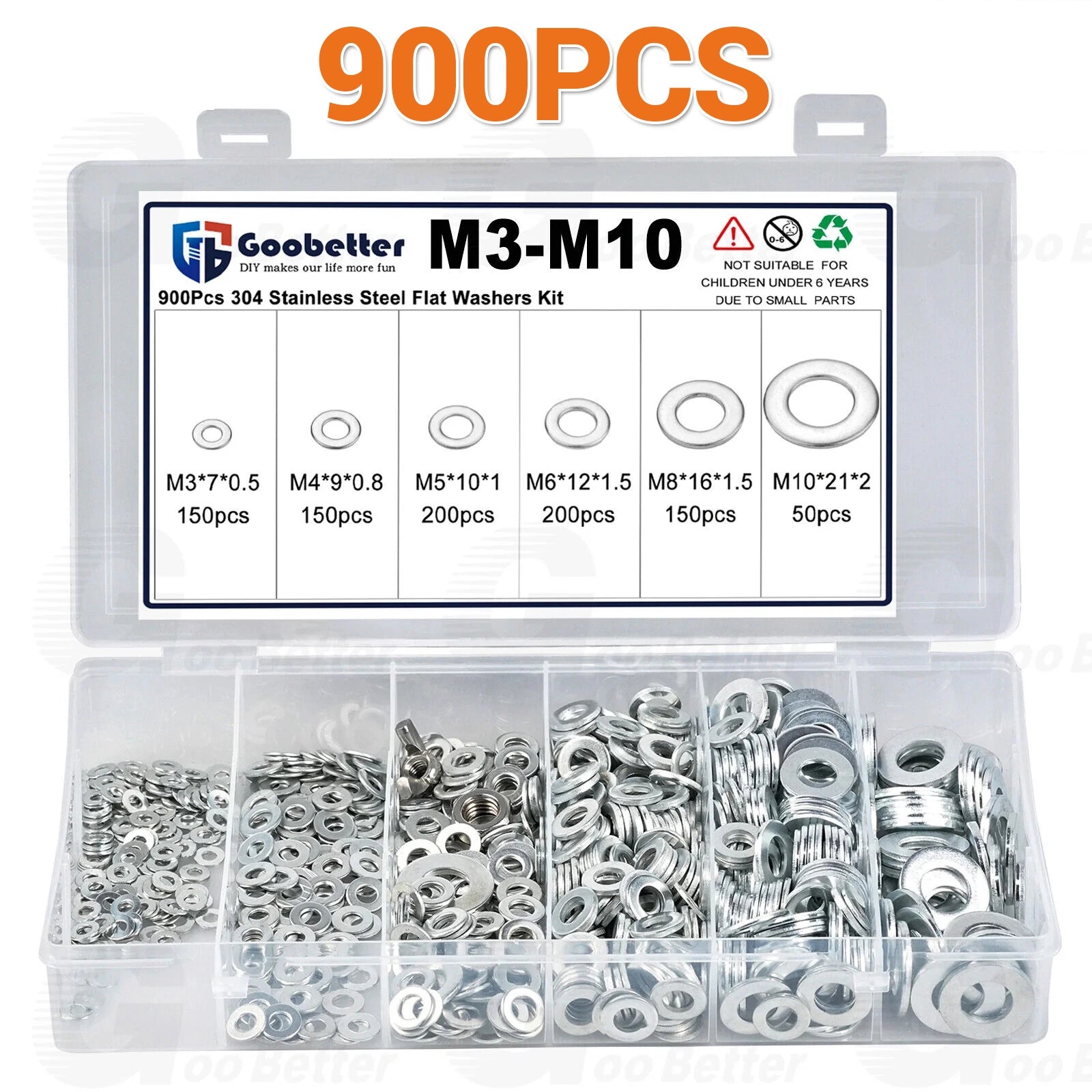 900Pcs Flat Washers Assortment Set Zinc Plated Washer For Screws M3 M4 M5 M6 - M10 - HomeDIYer