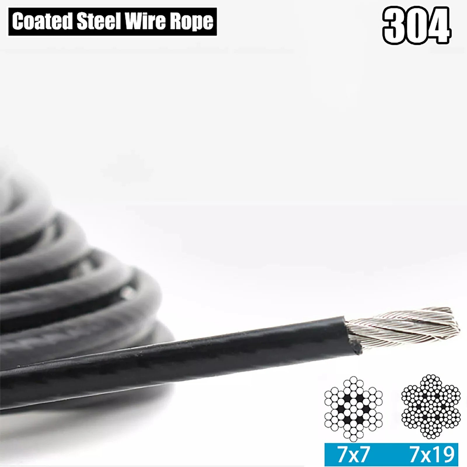 Stainless Steel Wire Rope Cable Black PVC Plastic Coated 1mm 2mm 3mm 4mm 5mm 6mm - HomeDIYer