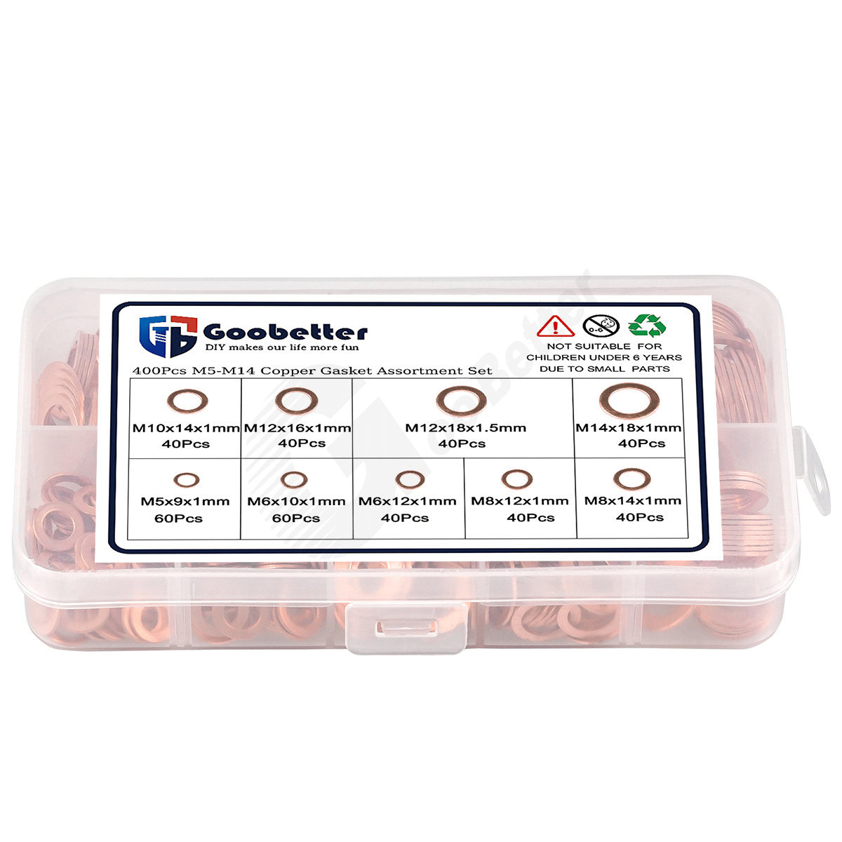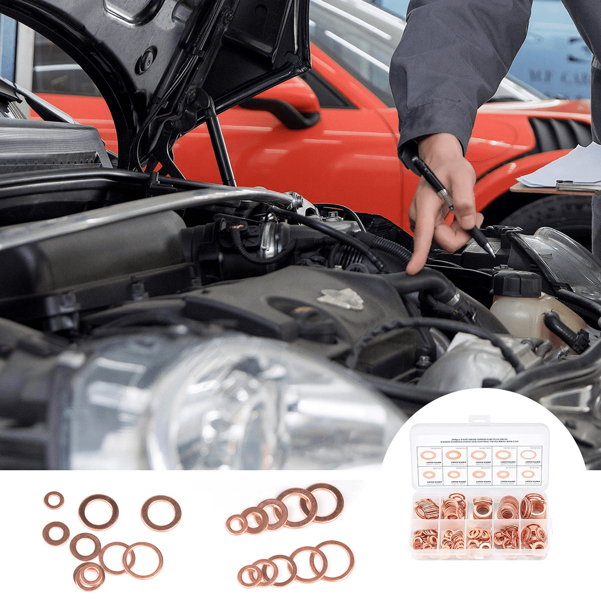 400Pcs Copper Gasket Car Engine Washers Metric Crush Seal Flat Ring M5 - M14 Set - HomeDIYer