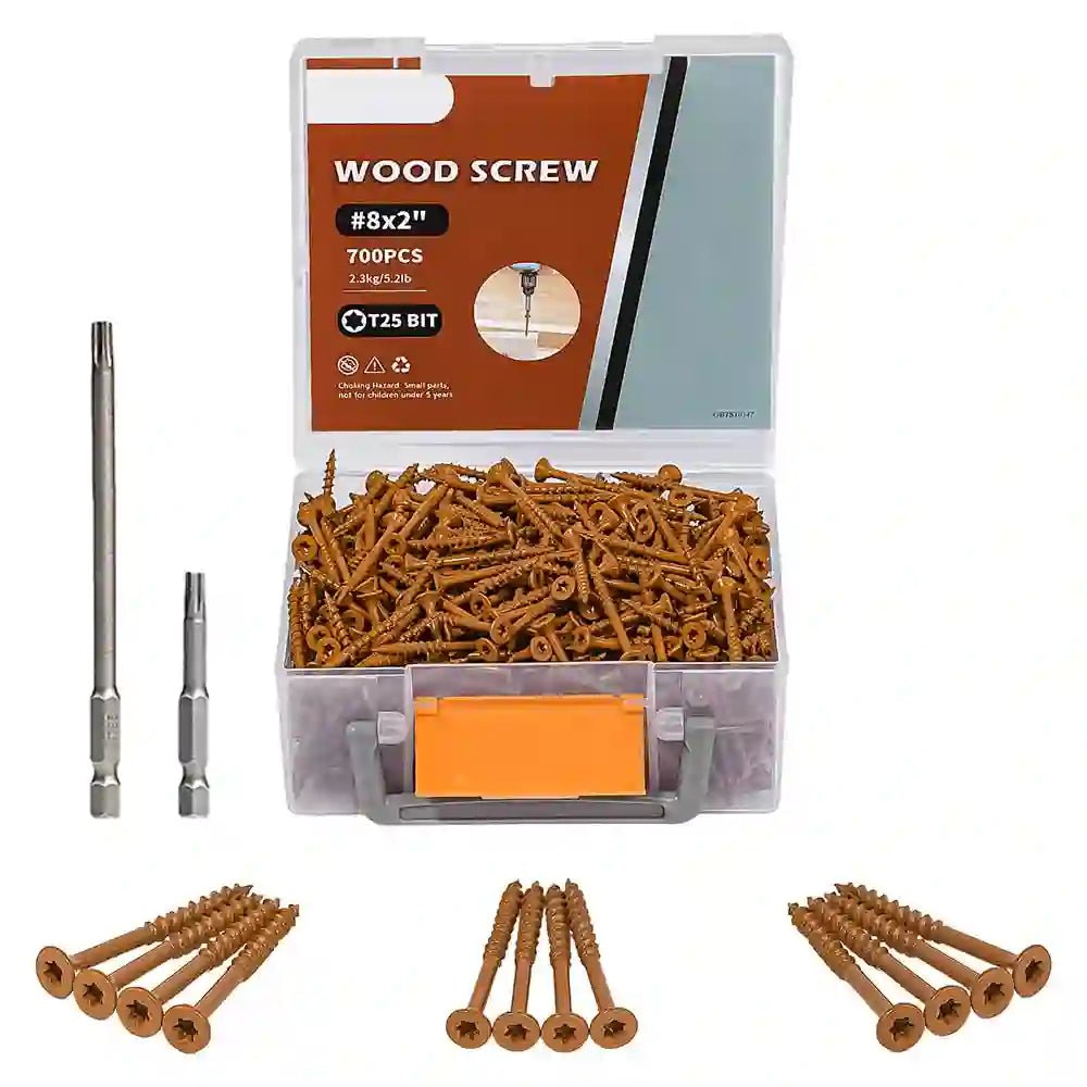 Terrassenschrauben, Holzschrauben, Torx-Schrauben, Bauzaunschrauben, Deckmate Außenschrauben für Holz, rostbeständig, T25-Sternbits enthalten, braun - #8x2" / 700 Stück