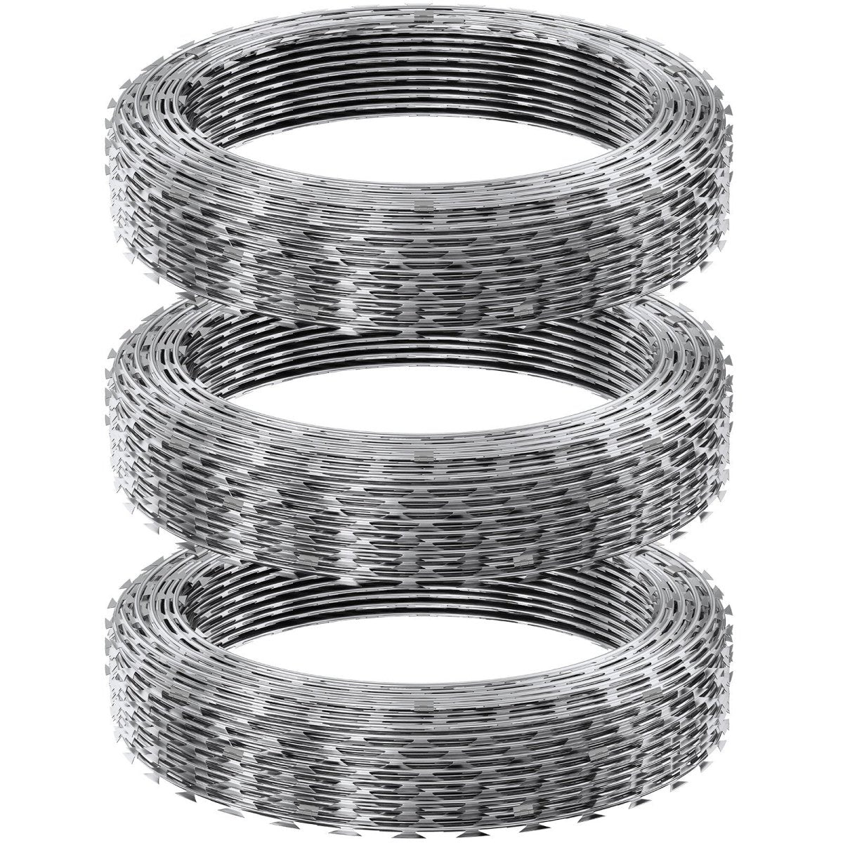 VEVOR Razor Wires, 147 ft Razor Barbed Wire, 3 Rolls Razor Wire Fencing Razor Fence, Double Spiral Razor Ribbon Barbed Wire Galvanized Razor Wire Fence, Rolls Razor for Garden - HomeDIYer
