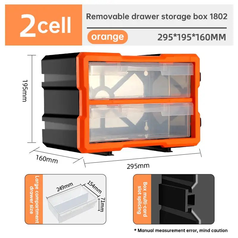 Hartplastik-Organisationsboxen Werkzeugteile Schrauben-Aufbewahrungsbox Werkzeugkiste Schubladen Arbeiten Professionelle Heimwerkzeuge Verpackung - 2 Fächer, groß (Orange)