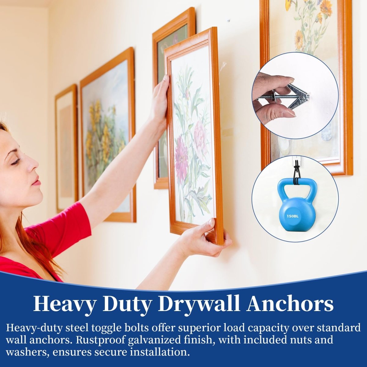 Heavy Duty Toggle Bolts and Wing Nut Kit 50 Sets - 1/8'', 3/16'', 1/4'' Drywall Anchors & Screws Assortment with Nuts & Washers for Wall Mounting & Hanging - HomeDIYer