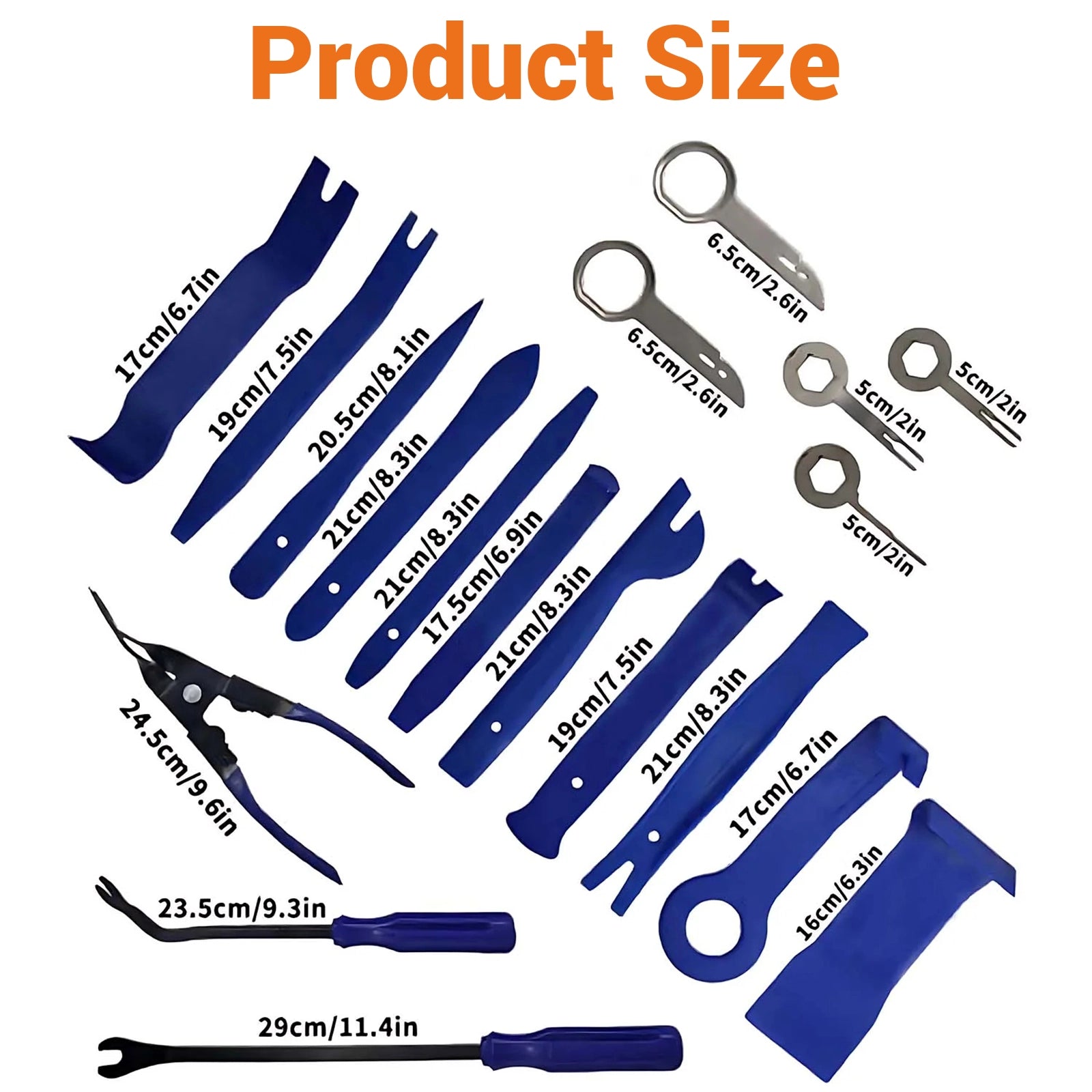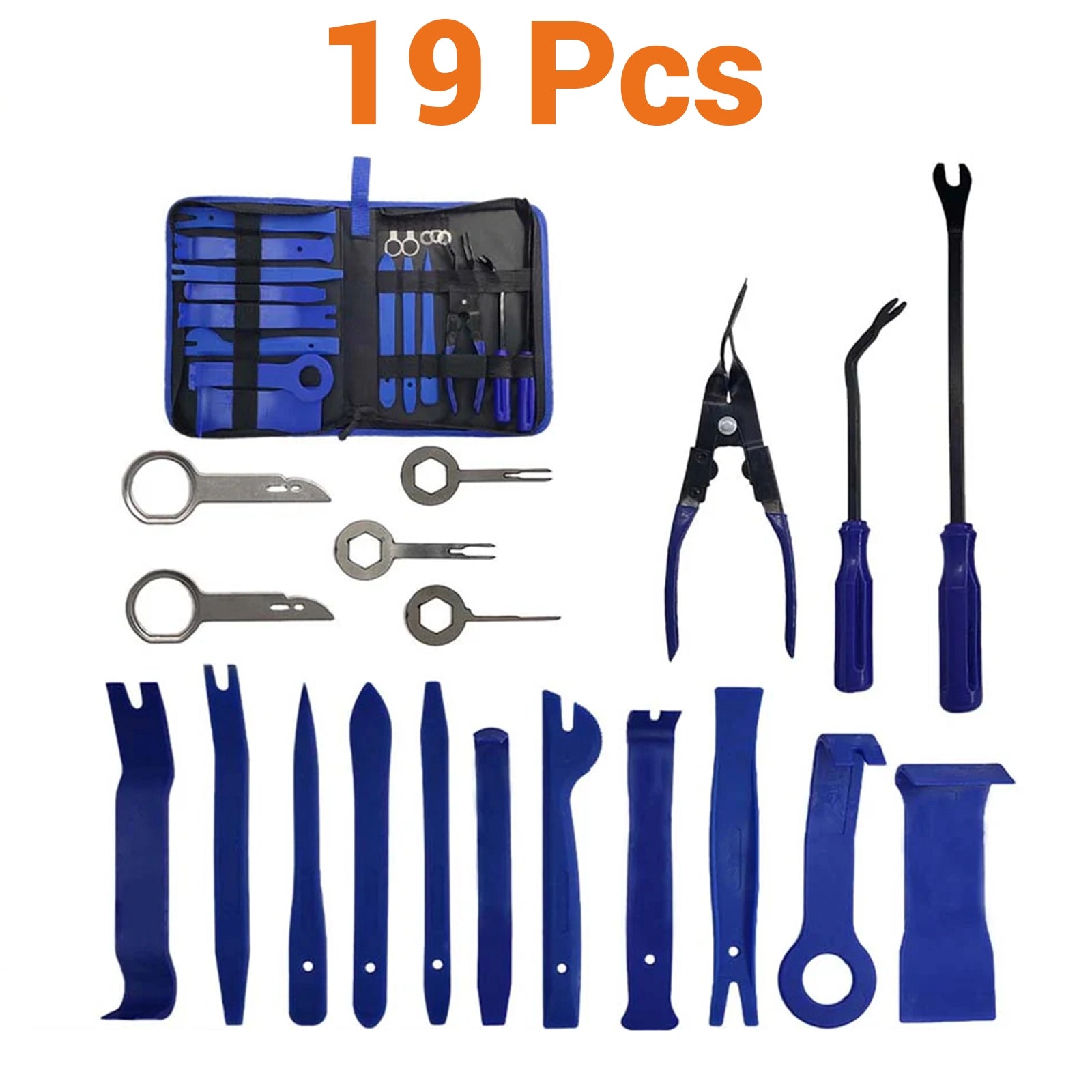 • 19-teiliges Set: Enthält Werkzeuge für Verkleidungen, Zierleisten und Radios.