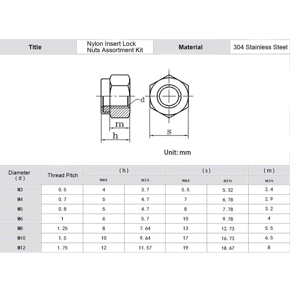 [Sicherungsmuttern]: Es gibt 91 metrische Sicherungsmuttern, sie sind M3 (20 Stück), M4 (20 Stück), M5 (10 Stück), M6 (15 Stück), M8 (10 Stück), M10 (10 Stück), M12 (6 Stück), 7 verschiedene Größen von Sicherungsmuttern mit Standardgewinde, um Ihren unterschiedlichen Anforderungen gerecht zu werden