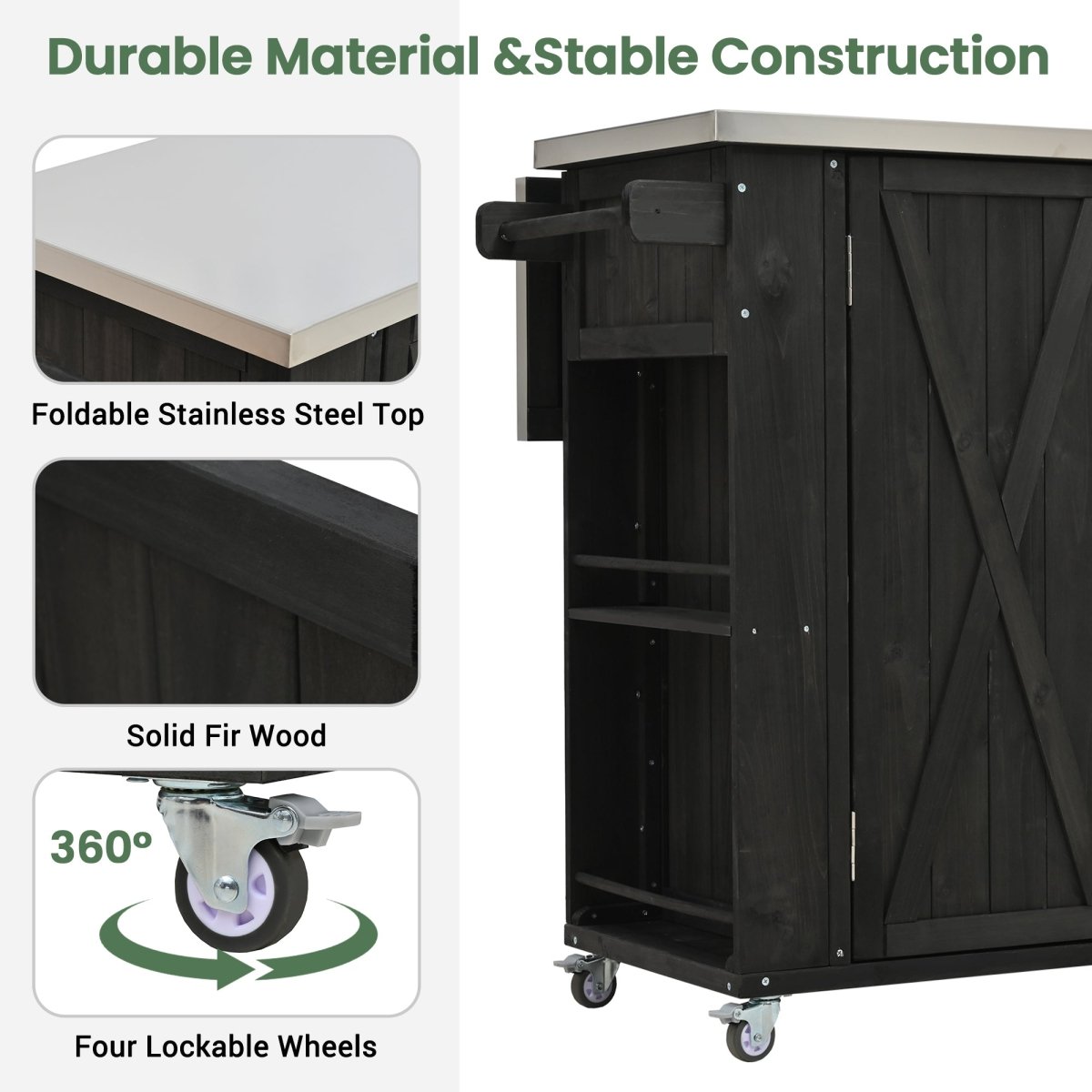 Outdoor Kitchen Island with Stainless Steel Top | Foldable Fir Wood Prep Statio - HomeDIYer