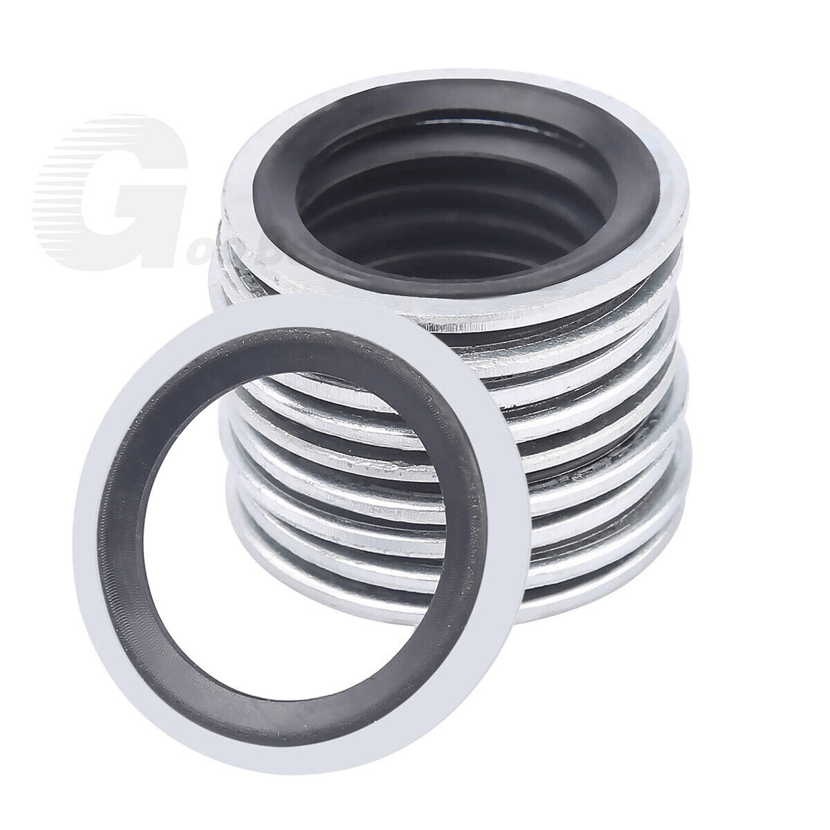 【Hochwertiges Material】Verbunddichtung besteht aus einem Kohlenstoffstahlring und einer NBR-Gummidichtung. Die Metallscheibe sorgt für einen zuverlässigen und sicheren Halt der zu verbindenden Komponenten.