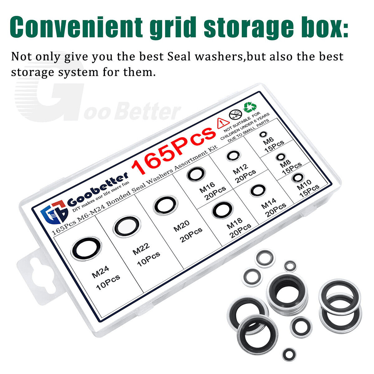 165x Bonded Seal Washers M6 - M24 Kit Washer Hydraulic Oil Petrol Sealing Washers - HomeDIYer