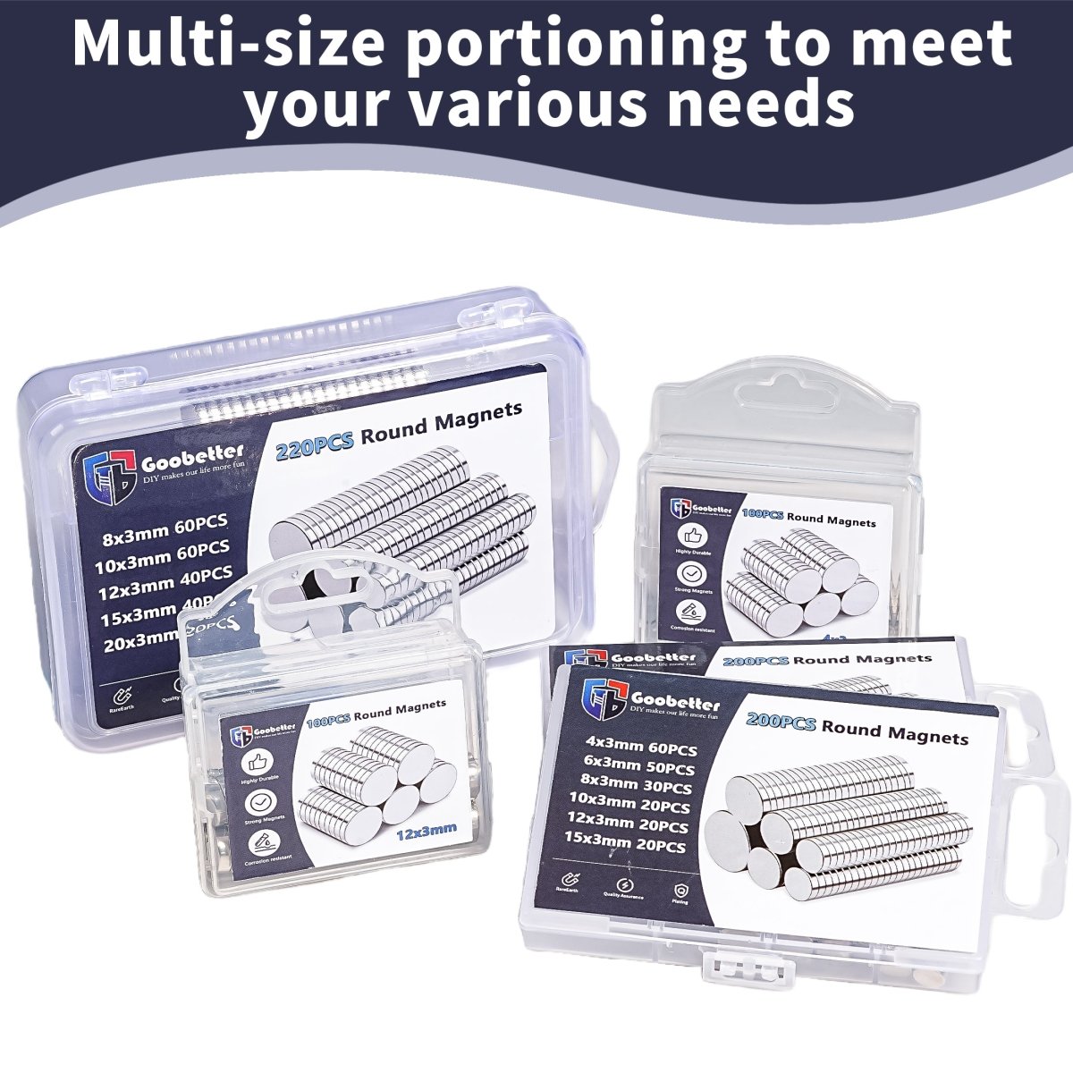 Das Magnetset enthält kleine, runde Magnete gleicher Größe. Diese kleinen, runden Magnete haben eine glatte, saubere Oberfläche und eine bessere Saugkraft für eine einfache Verwendung und Organisation. Hochleistungsmagnete mit einer Box können den vielfältigen täglichen Bedarf decken.