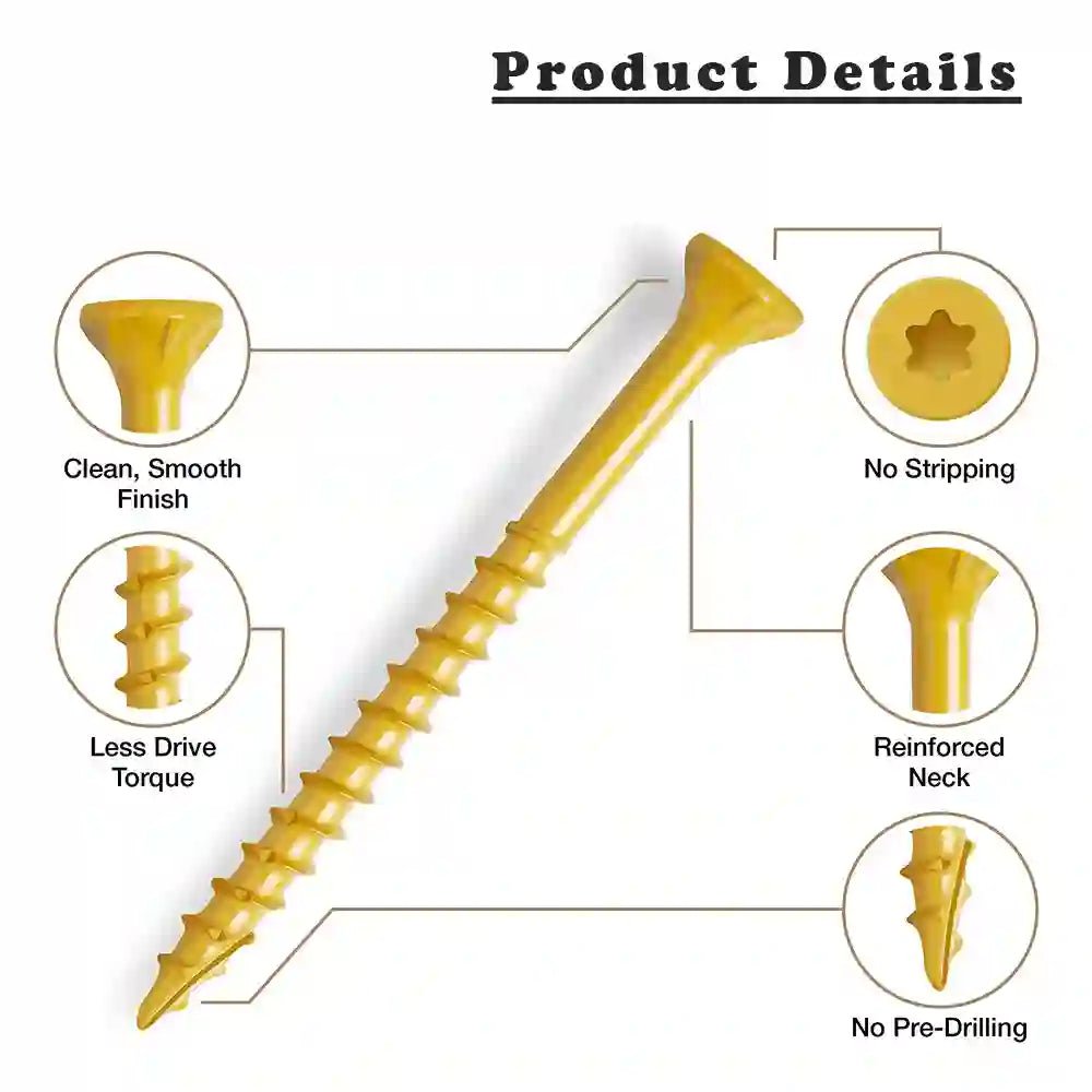 Yellow Deck Screws Set T25 Torx Self Tapping Wood Screws Exterior Deck Screws - HomeDIYer