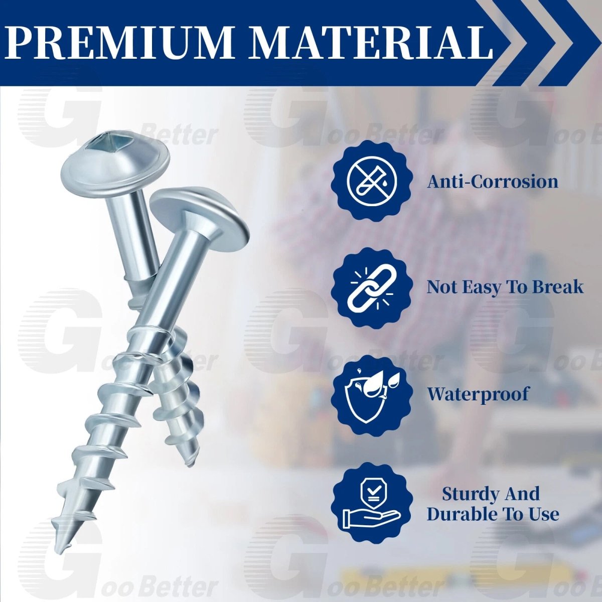 【Square Drive】: Deep square of pocket hole screws wide contacts with drive bit, 4 square edges reduce torque for driving, avoid stripping at driving work.