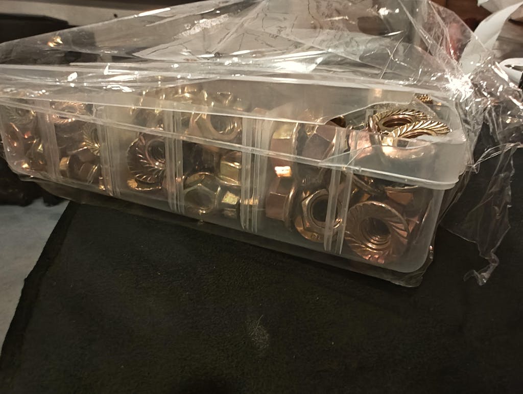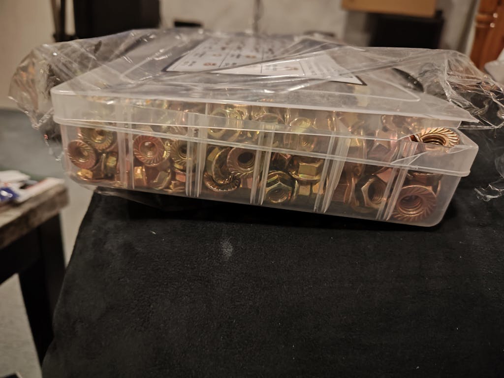 Item got damaged in shipping. The plastic case was busted open and deformed. Can't really blame the seller for that, but unfortunately I have a busted up bolt assortment and unsure what might be missing. Don't really have time to inventory in my current schedule.