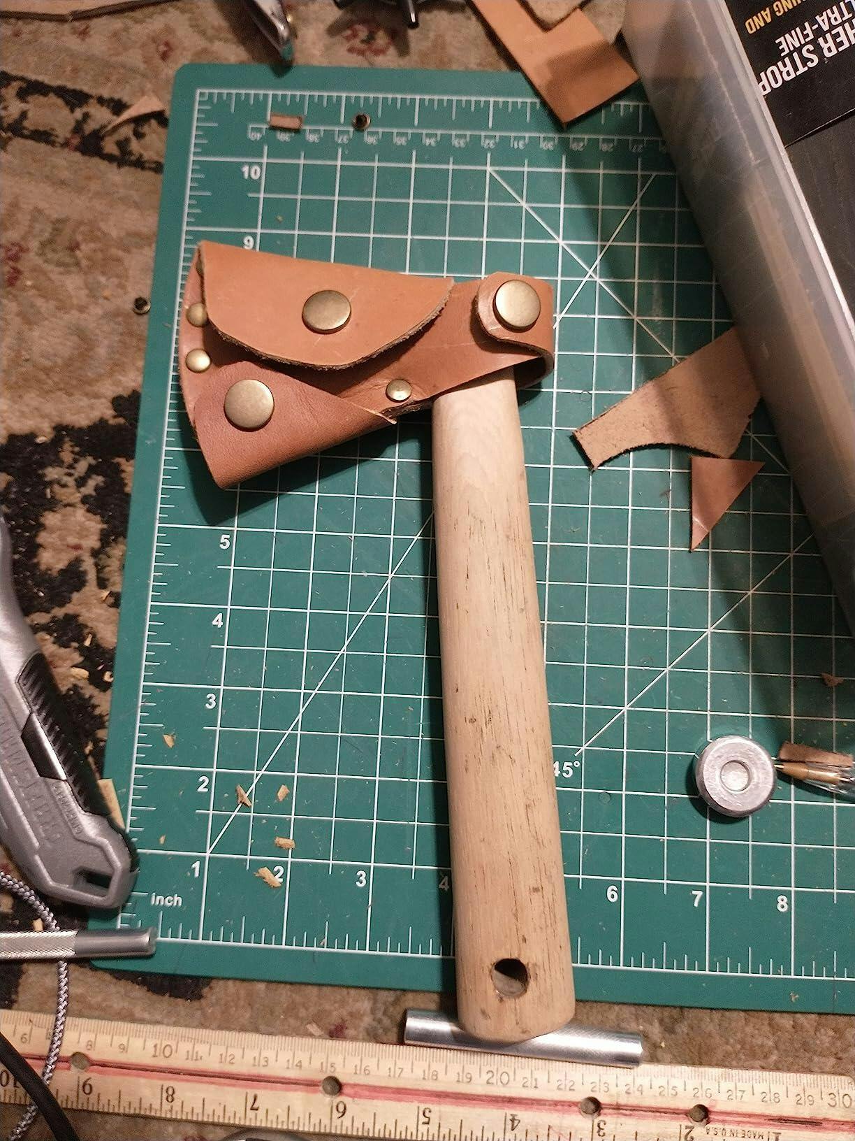 These rivets are easy to set, and fasten securely. (The snaps on my hatchet sheath in the picture are not part of this kit. The rivets are, however.)