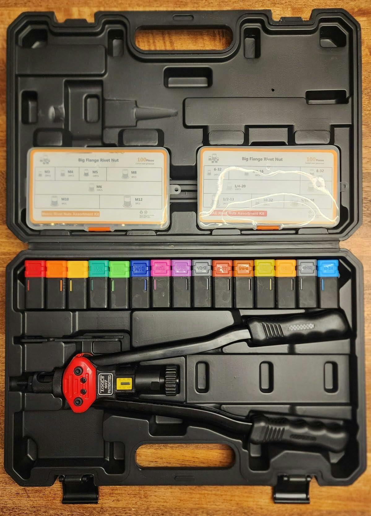 This rivet nut tool kit has been a solid addition to my garage. The tool itself feels sturdy and works smoothly. The long handles make it easier to install rivnuts without needing a ton of force, even on tougher materials.